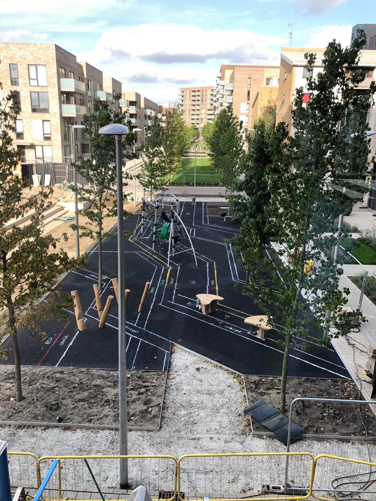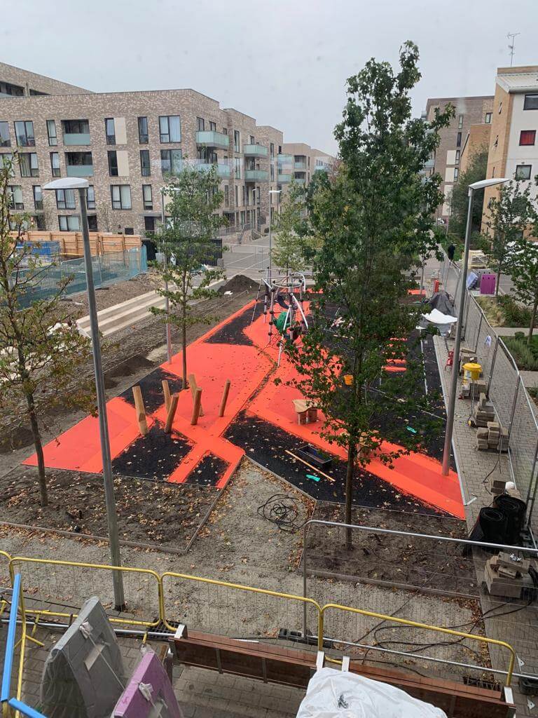 About a month ago, at the end of August/start of September, we installed a massive wetpour playground on a Willmott Dixon home development site in Aberfeldy, London.