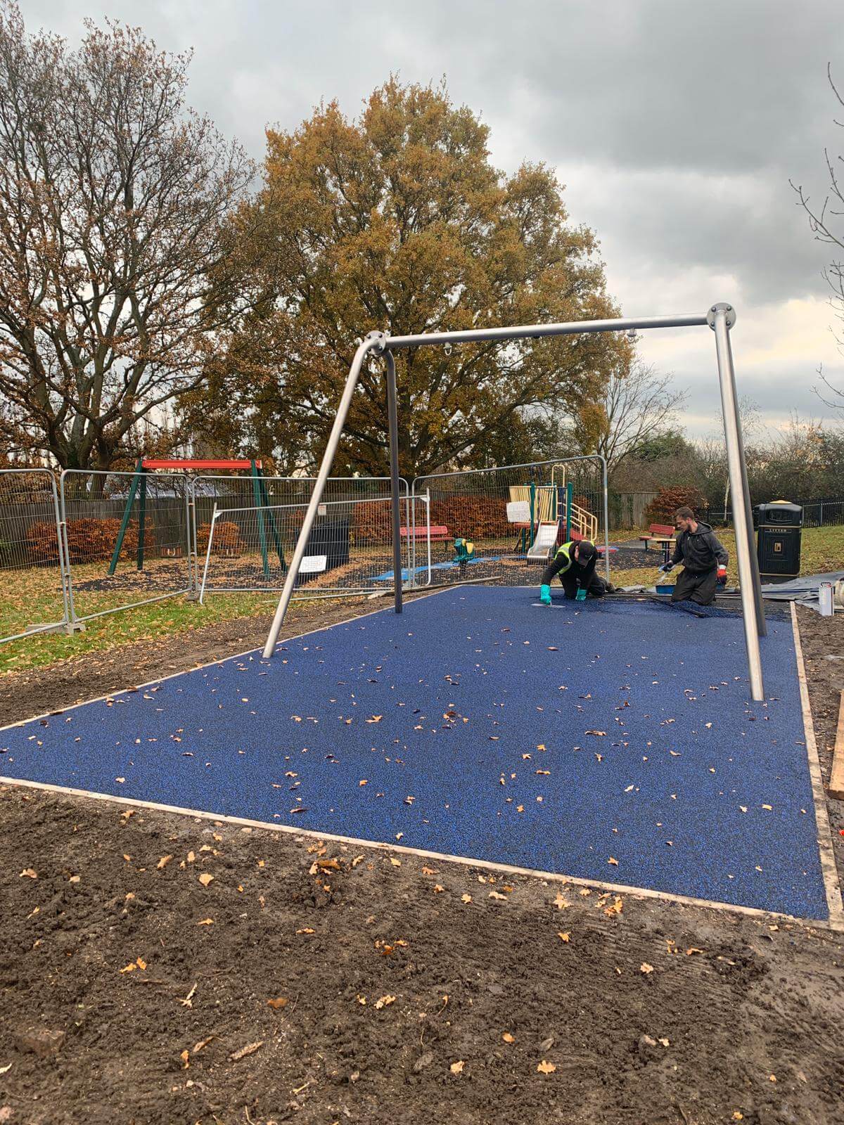 The 8m x 4m swing bay required a Critical Fall Height of up to 1.7m, so we installed our RubbaSmart surfacing at 60mm thickness.