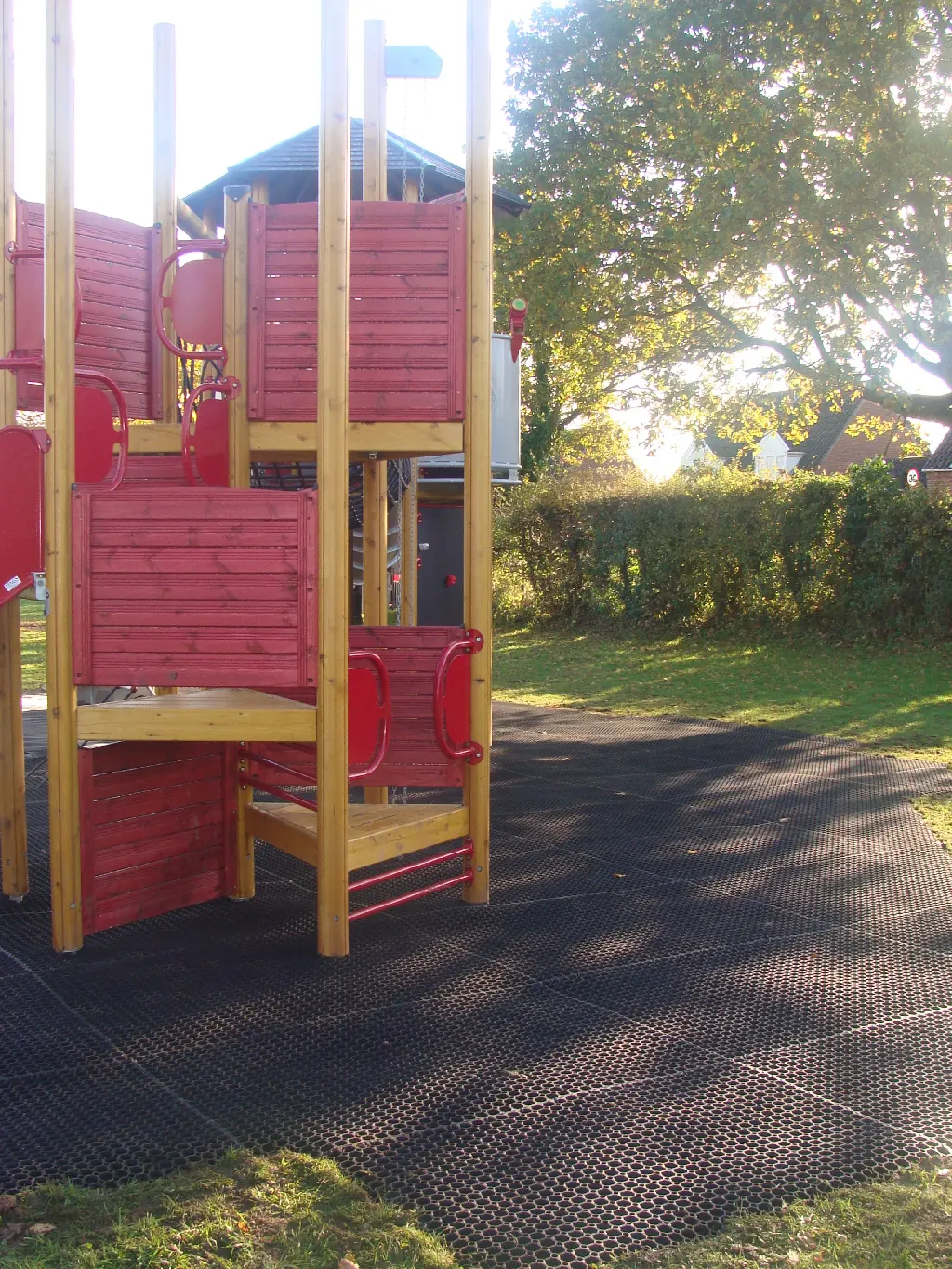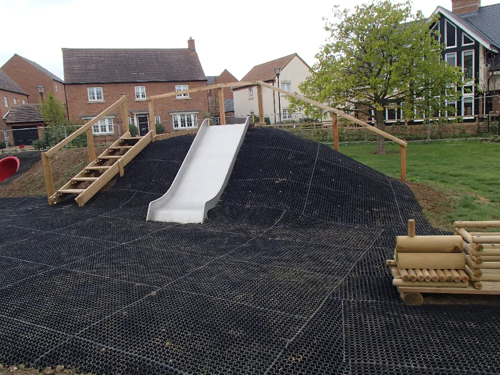 Rubber grass mats such as FireSmart matting provide a more reliable safety surfacing guarantee than plastic safety tiles, providing a softer landing from greater fall heights.
