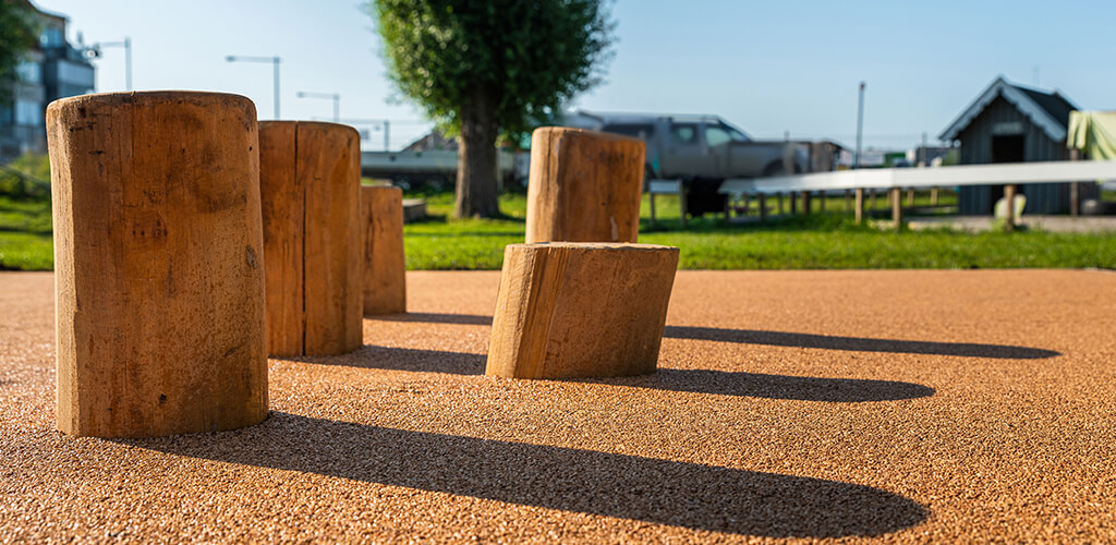 Recycled rubber mats like our EcoSmart Natural Play Safety Surfacing are made from high-quality recycled rubber in a honeycombed structure that provides a softer landing than hard plastic safety tiles. Plastics are becoming less popular as a playground solution with more wooden play equipment and rubber flooring. This is both because of the sustainable play element, but also because natural materials are often the superior option for reliable and durable play areas.