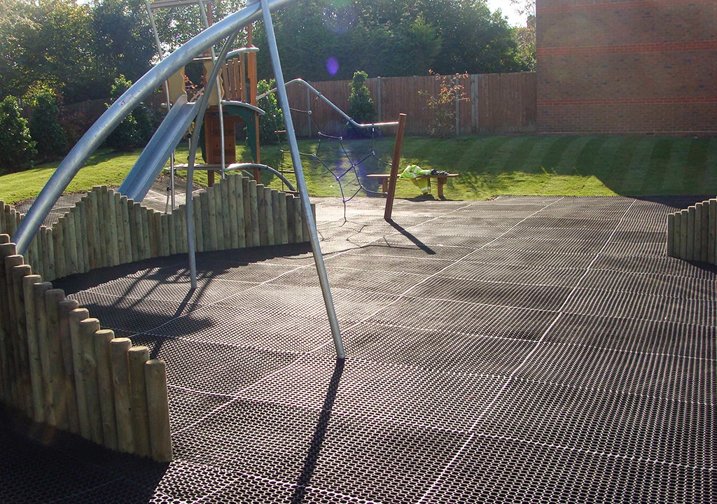 On playgrounds, hot weather can increase the risks of falls as the soil becomes hard and grass dies back unable to act as a playground cushioning material. If this is a concern, grass protector matting is a great safety surface solution that protect both your existing natural surfaces and your playground users.